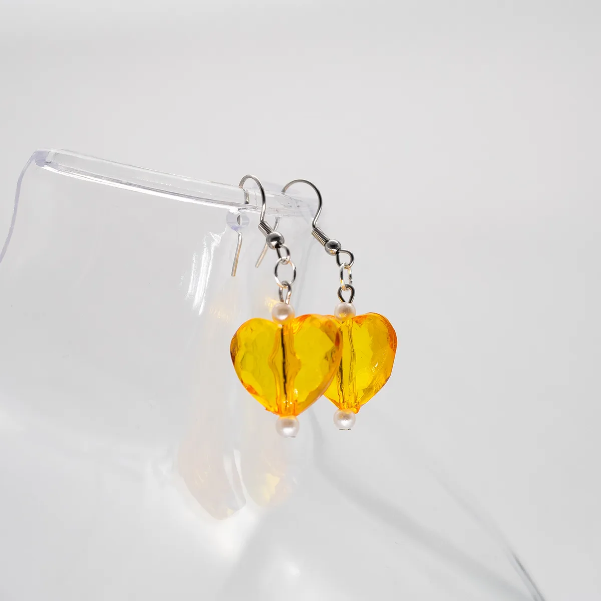 Handcrafted crystal heart earrings with freshwater pearl accents. Hypoallergenic and tarnish-free.