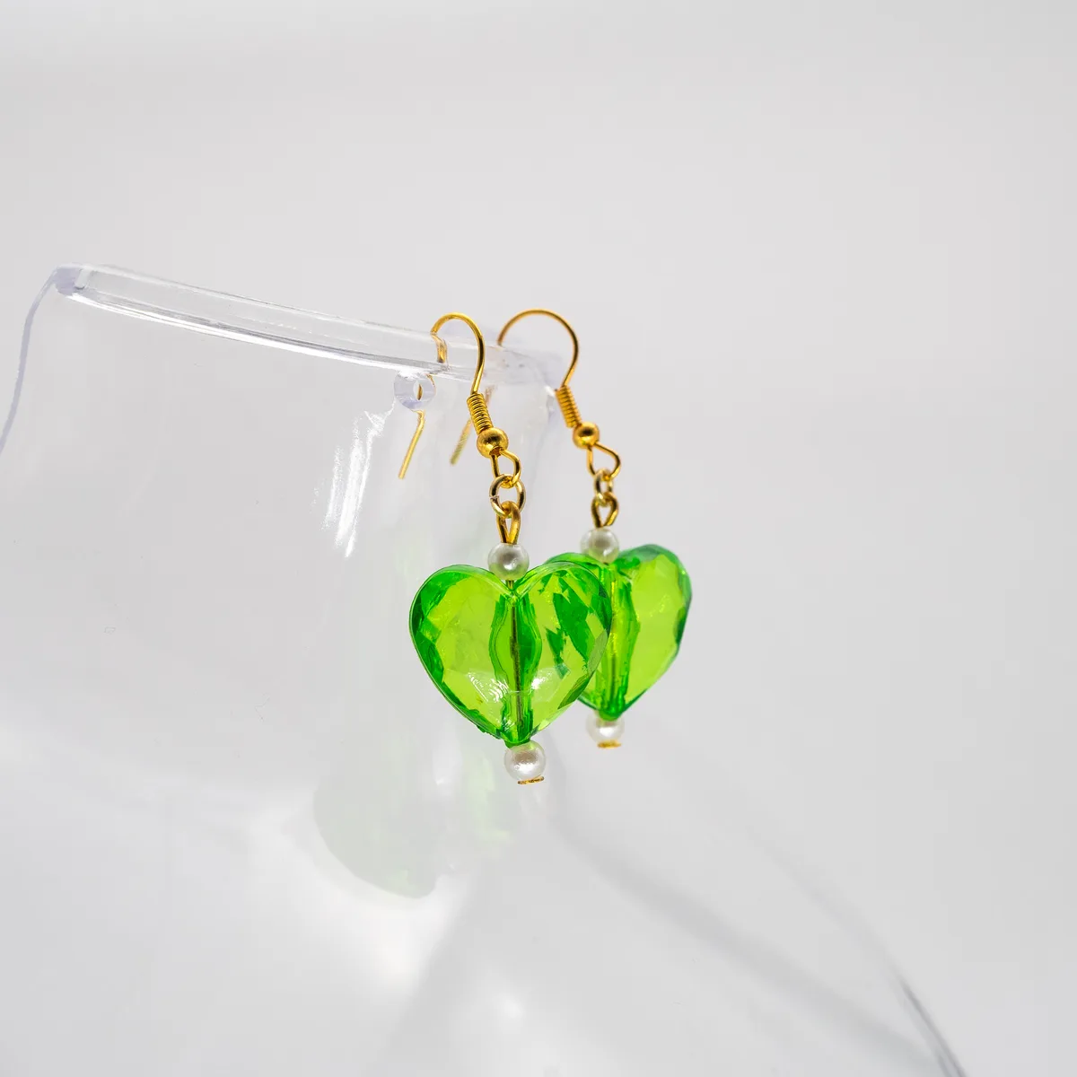 Handcrafted crystal heart earrings with freshwater pearl accents. Hypoallergenic and tarnish-free.