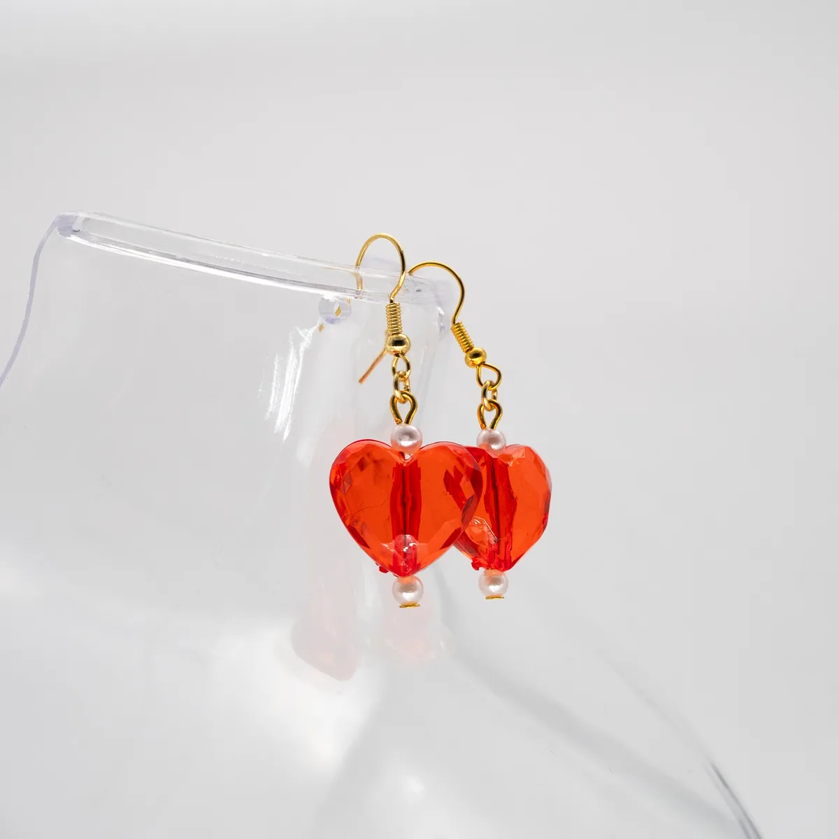 Handcrafted crystal heart earrings with freshwater pearl accents. Hypoallergenic and tarnish-free.