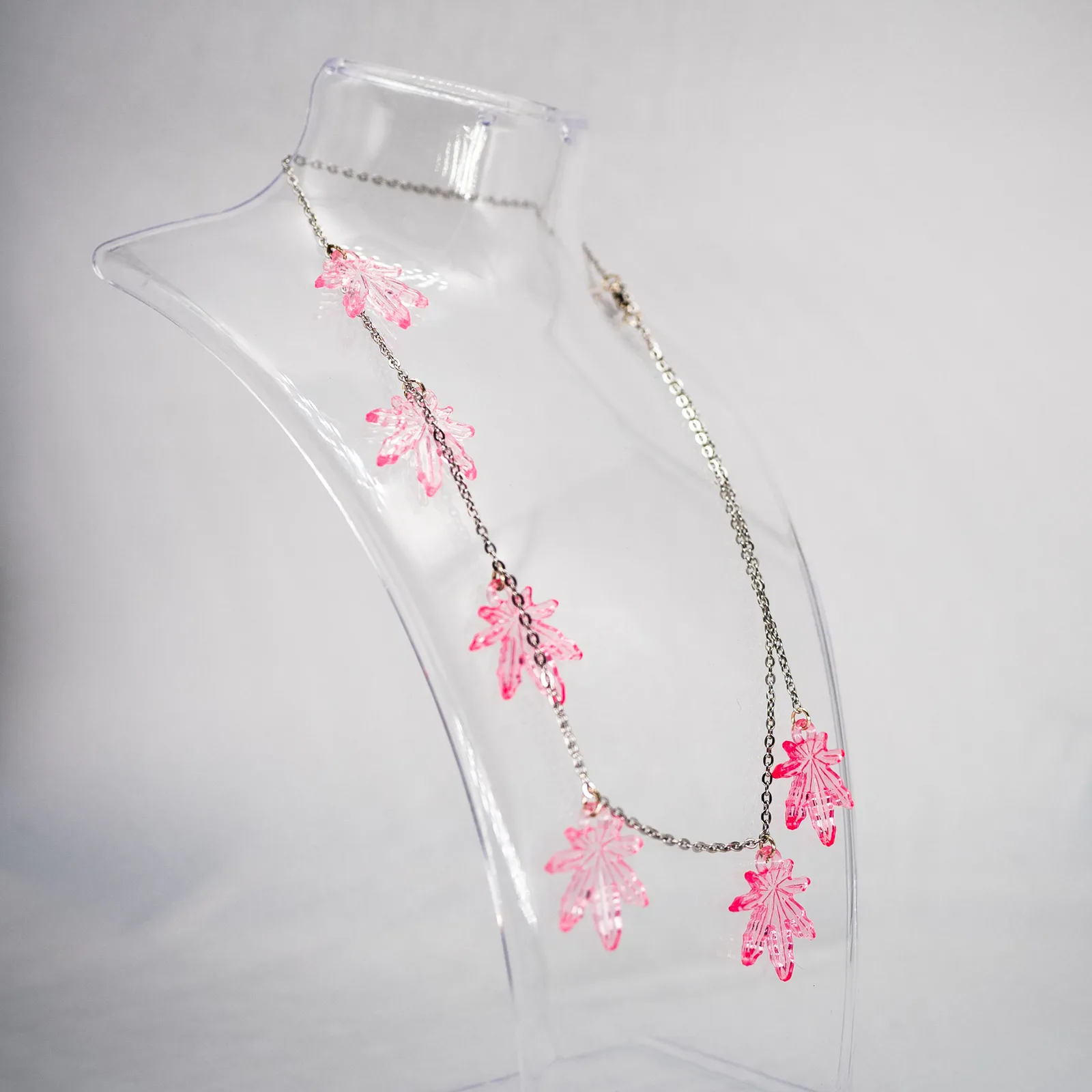 Baby Pink and Silver Leaf Necklace