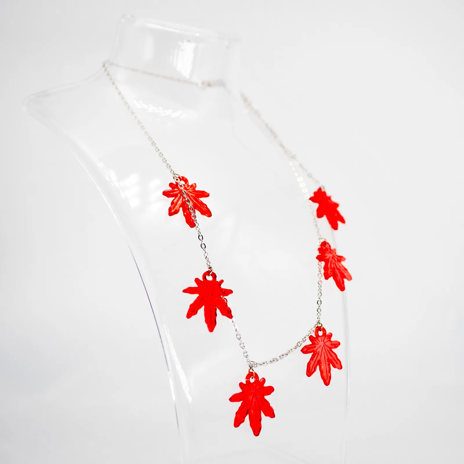 Red and Silver Leaf Necklace