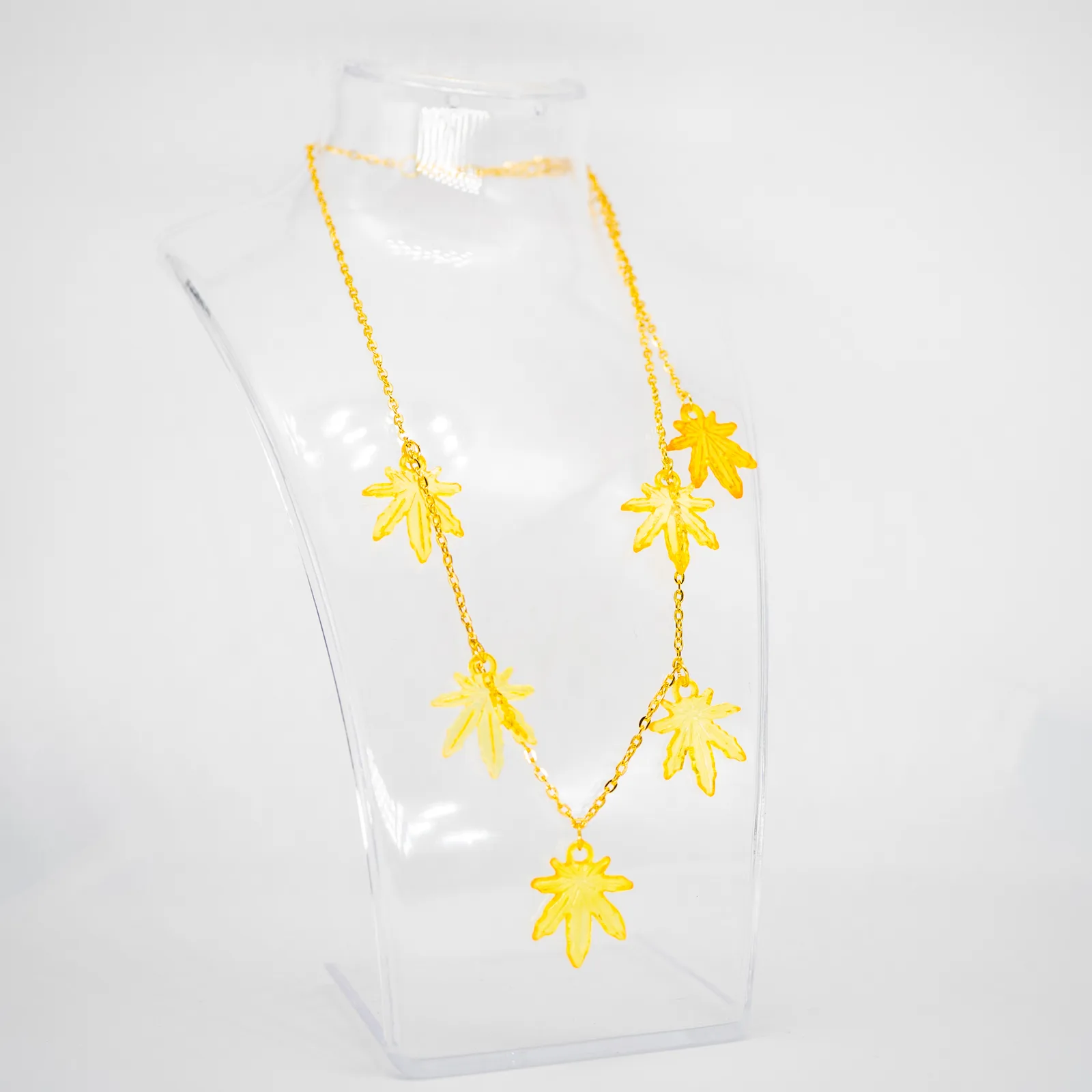Handcrafted canna leaf charm necklaces. Hypoallergenic, tarnish-free, and finished on a delicate gold or silver chain.